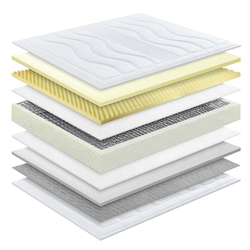เส้นใยเกลียว 3 มิติของเรามีความยืดหยุ่นที่ดีเยี่ยม ป้องกันการหย่อนคล้อยแม้ใช้งานมานานหลายปี ชั้นล่างที่มั่นคง และชั้นบนสุดนุ่มสบายทั้งนอนตะแคงและหงายหลัง